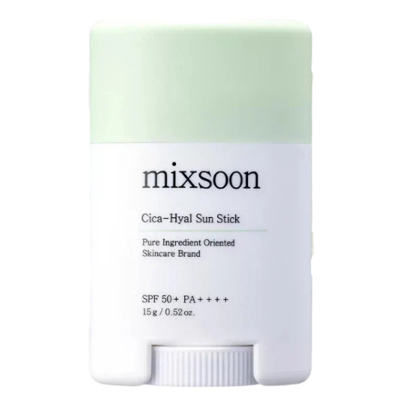 The Mixsoon Cica-Hyal Sun Stick is a solid-format sunscreen designed to combine high sun protection with intensive soothing and hydrating care. Its formula is centered around a dual complex of Cica (Centella Asiatica) to calm irritation and strengthen the skin barrier, and Hyaluronic Acid to deliver multi-level moisture and plumping benefits. Providing broad-spectrum SPF50+ PA++++ protection, the stick glides on smoothly with a transparent, weightless finish, leaving no white cast or sticky residue. This makes it an ideal product for convenient, mess-free reapplication throughout the day, offering effective sun defense while actively comforting and hydrating sensitive or stressed skin.