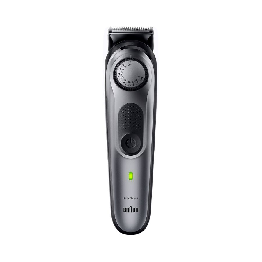 The Braun BT7420 is an advanced beard trimmer built for precision, power, and comfort. Engineered with ultra-sharp stainless steel blades, it ensures an even and smooth trim every time, cutting through thick or long hair without pulling. The trimmer features precision dial settings offering up to 39 length adjustments, giving you complete control over your beard style. Powered by a long-lasting Li-ion battery, it provides up to 100 minutes of cordless use from a single charge. Fully washable and waterproof, the BT7420 is easy to clean and safe to use in the bathroom. Its ergonomic grip ensures maximum control and comfort, while the stylish black and silver design enhances both performance and elegance — perfect for men who value detail and precision.