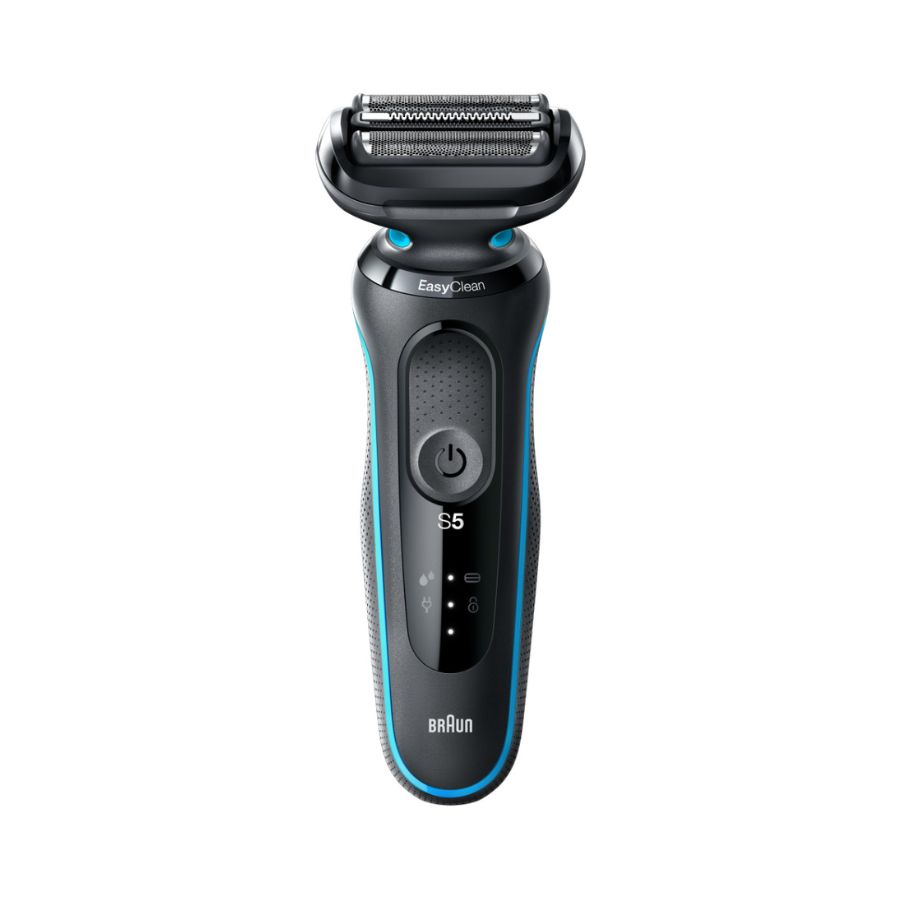 The Braun Series 5 51-M1000S is a versatile wet & dry electric shaver built for daily use. It incorporates 3 flexible blades that adapt to facial contours, ensuring a close and comfortable shave. With AutoSense technology, it reads beard density and adjusts power dynamically to capture more hair in every stroke. Its EasyClean system allows rinsing under water without needing to remove the shaving head. The Li-Ion battery provides up to 50 minutes of cordless shaving, and a 5-minute quick charge gives enough power for one full shave. The shaver is 100% waterproof, making it suitable for use with foam, gel, or in the shower.