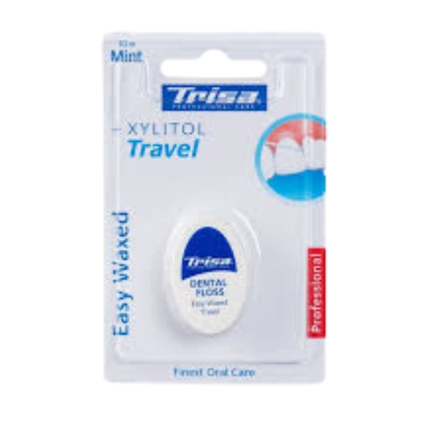 Trisa Dental Floss Easy Waxed Travel mint xylithol,10m is a compact, travel-friendly dental floss designed for convenient on-the-go oral care, featuring a smooth waxed texture that glides easily between teeth to help remove plaque and food particles with minimal irritation; enriched with refreshing mint flavor and xylitol to support fresh breath and daily hygiene, its gentle yet durable floss ensures effective cleaning wherever you are, while the 10-meter length makes it practical and easy to carry for clean, healthy-feeling teeth anytime.