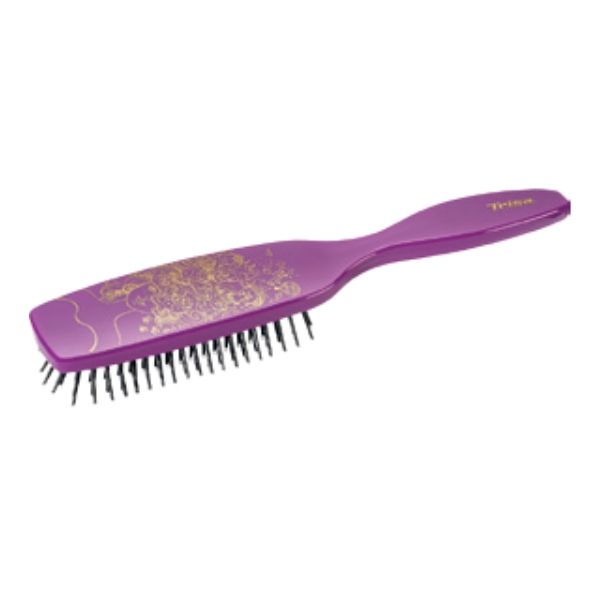 Trisa HairB Fantasy Medium is a well-balanced, smoothly crafted hairbrush designed for everyday comfort, featuring soft, flexible bristles that glide gently through the hair to detangle without pulling while boosting natural shine; its medium size offers an ideal blend of coverage and control, making it suitable for various hair lengths, and the comfortable, easy-grip handle ensures steady styling, leaving the hair looking neat, manageable, and effortlessly refreshed.