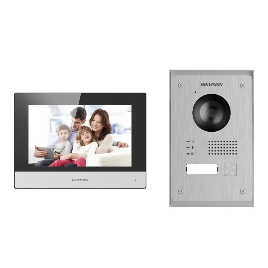 The Hikvision DS-KIS703Y-P Two-Wire IP Video Intercom Kit combines modern design with cutting-edge security technology to deliver a reliable communication and access control solution. Using an advanced two-wire digital IP system, it simplifies installation by transmitting power, audio, and video through a single pair of cables. With built-in data security encryption, it ensures user privacy and protection against unauthorized access. The high-definition resolution provides crystal-clear video, enabling accurate visitor identification at any time of day. Equipped with multiple ports, including Two-Wire Interface, Ethernet, Power Input, and Door Lock Output, it offers flexible connection options. The IP connectivity allows for remote monitoring and integration with smartphones or network systems. With local and network storage capabilities, this kit provides safety, convenience, and reliability in one compact design — ideal for modern residential or office use.