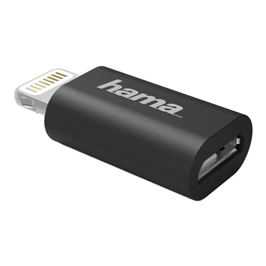 The Hama 178400 adapter allows you to connect a micro-USB cable to an Apple device with a Lightning port, such as iPhones and iPads. It supports data transfer speeds up to 480 Mbps and features double shielding to reduce electromagnetic interference. The compact design makes it ideal for charging, syncing, and data transfer. Licensed by Apple (MFi), it ensures safe and reliable compatibility. This adapter is a practical solution for people who want to reuse their micro-USB accessories without buying new Lightning cables.