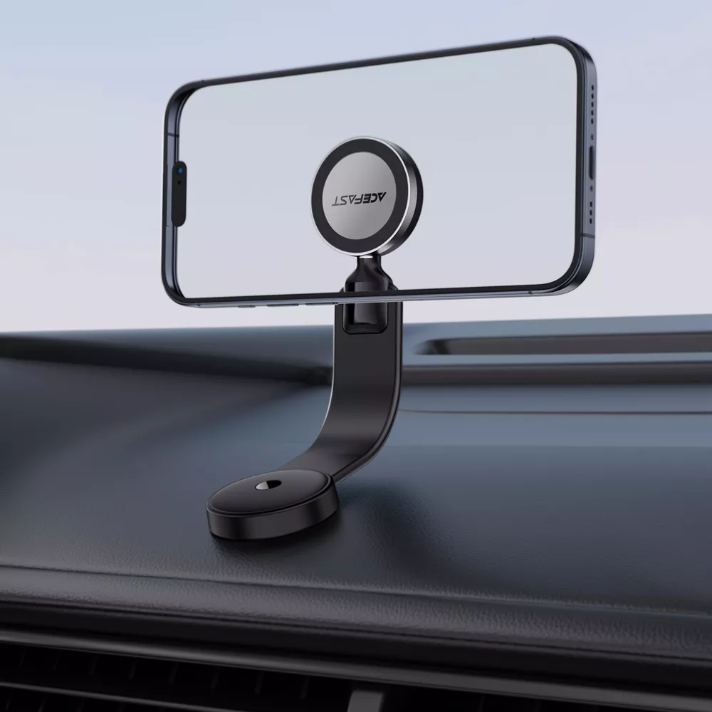 The Acefast 15W MagSafe Magnetic Charging Car Dashboard Holder - Black is a premium 2-in-1 car accessory that combines fast wireless charging with a secure magnetic phone mount for effortless convenience while driving. Designed with strong built-in magnets compatible with MagSafe-enabled devices, it ensures a firm and stable hold even on bumpy roads, keeping your phone safely in place for hands-free use. The 15W fast charging capability delivers efficient power to your device without overheating, while the adjustable 360° rotation allows you to position your phone at any angle for optimal viewing in both portrait and landscape modes. With its sleek black finish, durable construction, and easy dashboard installation, this holder offers the perfect blend of functionality, stability, and modern style for everyday driving.