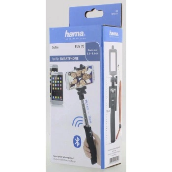 The Hama 4315 Fun 70 Selfie Stick allows easy and stable selfies with any Bluetooth®-enabled smartphone. Its lightweight and extendable design ensures flexible shooting angles for photos and videos. The ergonomic handle provides a comfortable grip, while the built-in Bluetooth® remote allows hands-free photo capture. Compact and portable, it is ideal for travel, parties, and outdoor adventures. Made with durable materials, this selfie stick offers long-lasting use while keeping your phone secure during every shot.