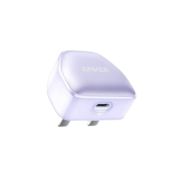 Anker 20W Ultra Compact Phone & Tablet Charger (Purple) is a pocket sized USB‑C wall plug offering 20 W Power Delivery, fast charging modern devices like iPhones and tablets (50% in ~25 minutes). Its stylish purple finish makes it stand out, and despite its compact size (around 45 × 27 × 27 mm, ~30–38 g), it packs robust PowerIQ 3.0 and ActiveShield safety technologies to prevent overheating and conserve battery health. Highly praised for dependable speed, low heat, and vibrant design, it's a reliable charging companion for travel and daily use.