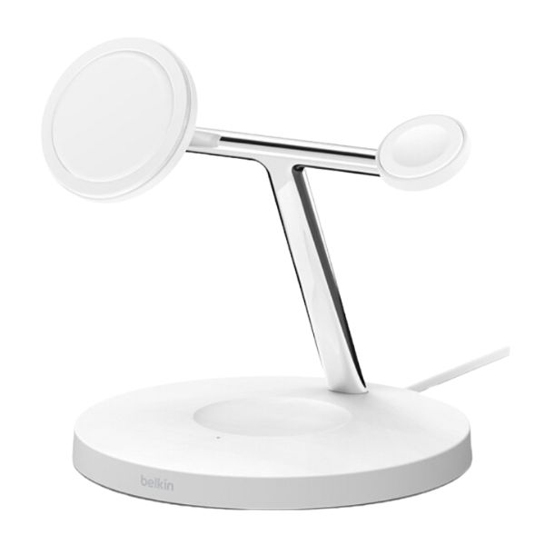 The Belkin BoostCharge 3-in-1 Magnetic Charging Stand with Qi2 delivers fast wireless charging up to 15W for compatible iPhones, AirPods, and Apple Watch. Its sleek, space saving design features magnetic alignment for effortless placement. Ideal for Apple users, it offers a convenient and clutter free charging solution.