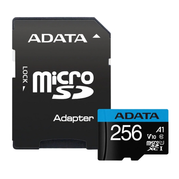 A reliable 256GB microSDXC card with UHS-I technology for fast transfers and Full HD video recording. Includes an SD adapter for versatile use with cameras, laptops, and more. Built to resist water, shock, and temperature changes, ensuring safe and durable storage.