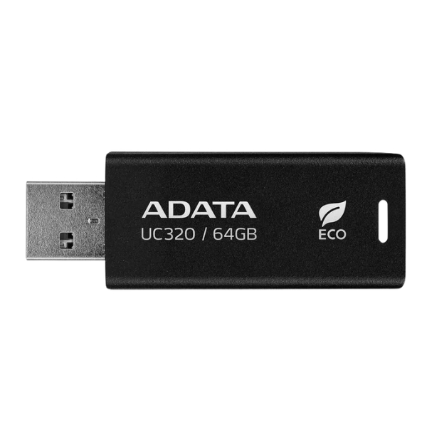 The ADATA UC320 64GB USB 3.2 Flash Drive is a compact and eco-friendly storage solution featuring a capless slide design and PCR (post-consumer recycled) plastic construction. With USB 3.2 speeds up to 5 Gbps and a convenient keychain loop, it’s ideal for fast, portable data storage on the go.