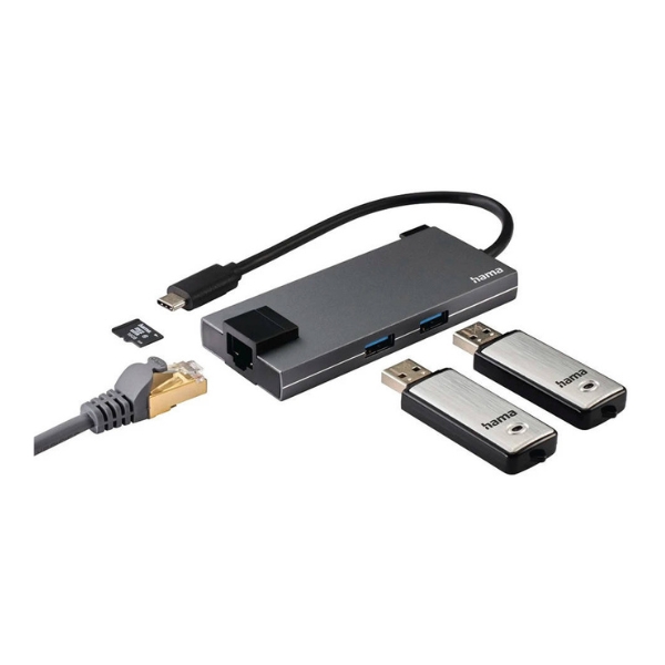 HAMA 200109 / USB-C Hub, Multiport, 5 Ports, 2 x USB-A, USB-C, HDMI, LAN/Ethernet