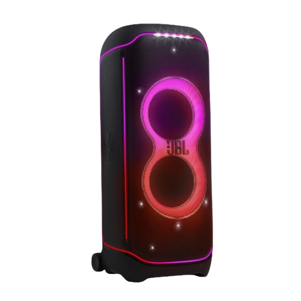 JBL Powerfull Bass Boost Partyboxulteu Black is a large, portable speaker built for high energy gatherings. It features a bold design with dynamic lighting effects. The speaker is easy to move around with built in wheels. It plays wirelessly and is made for both indoor and outdoor fun.