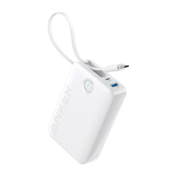 Anker 335 Power Bank packs serious power into a sleek, compact package. With a 20,000 mAh battery, it delivers fast 22.5 W Power Delivery through its built-in USB‑C cable, plus one additional USB‑C and USB‑A port—allowing you to charge up to three devices at once. It also features a handy digital battery display, an integrated phone stand built into the casing, and a convenient strap for easy carry. Despite its high capacity, it remains thin and portable—designed to keep your phone, tablet, or earbuds fully charged during travel, workdays, or outdoor adventures.