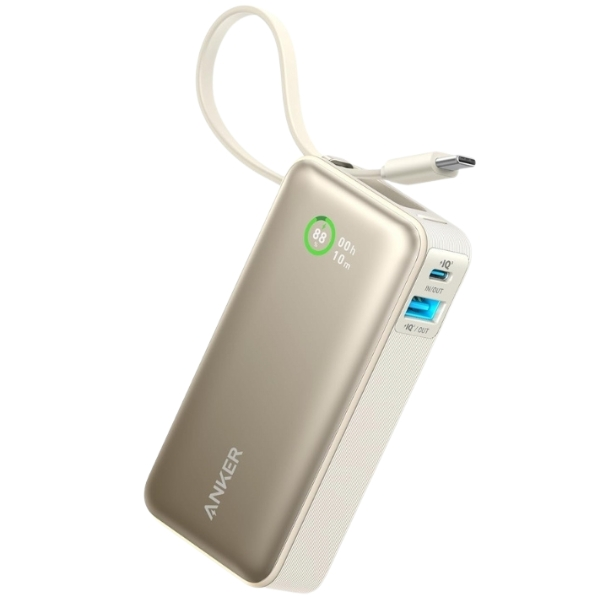 The Anker 533 10,000mAh 30W Power Bank with Built-in USB-C Cable is a slim, portable charger that delivers fast 30W charging for phones, tablets, and laptops. Its built in USB-C cable adds convenience, and the smart display shows real-time battery status, making it perfect for on the go power needs.