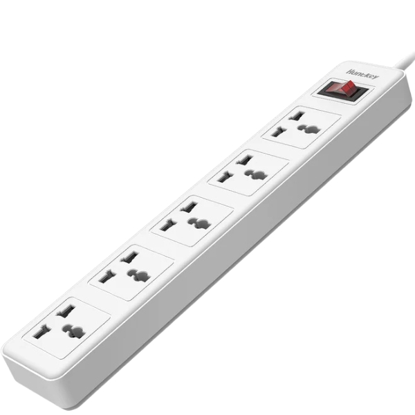 The Huntkey SSZ501 5-Port UK Plug Power Strip, 5m Cord, 2500W Max, Flame Retardant, Child Safety Shutters, Double Break Switch is built for safety, durability, and convenience. It features five UK outlets, a long 5-meter cord for flexible placement, and supports up to 2500W maximum load. Designed with flame retardant materials, child safety shutters, and a double break switch, it provides enhanced protection for your devices, making it ideal for both home and office use.