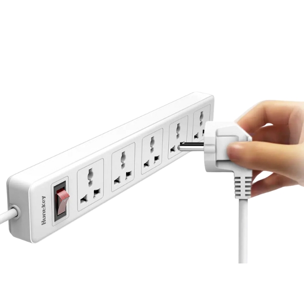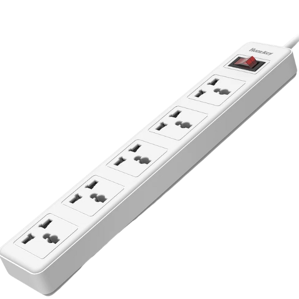 The Huntkey SSZ501 Power Strip – UK Plug, 5 Outlets, 3m Cord, 2500W Max Load, Flame-Retardant, Child Safety Shutters, Double Break Switch, Universal Sockets features 5 universal sockets and a 3-meter cord, supporting a maximum load of 2500W. Designed for safety and convenience, it includes flame retardant materials, child safety shutters to prevent accidental shocks, and a double break switch for enhanced protection. Its versatile universal sockets accommodate various plug types, making it ideal for home or office use.