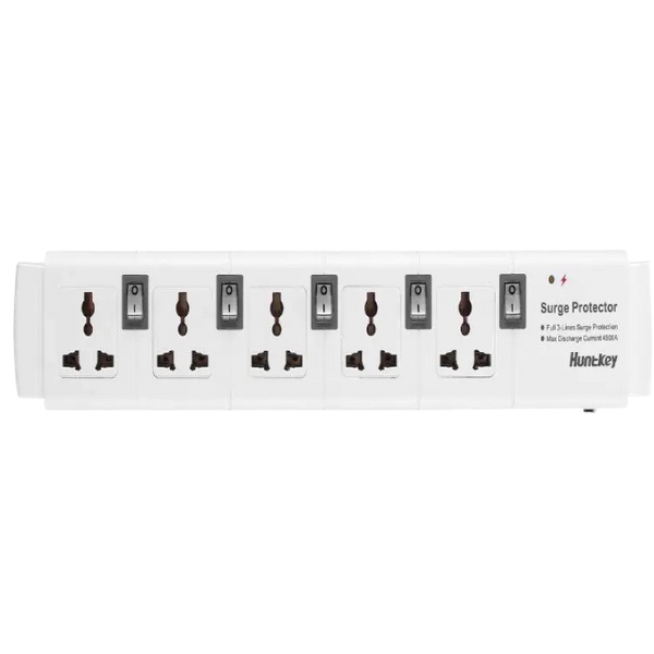 The Huntkey SZC502 5-Port Power Strip with Independent Switches, Surge & Overload Protection, Flame Retardant Material, 3m Cord, 2500W Max offers individual switches for each outlet, allowing easy control and energy savings. It includes surge and overload protection to safeguard your devices from electrical damage. Made with flame-retardant materials and featuring a 3-meter cord, it supports up to 2500W maximum load, making it a safe and reliable solution for home or office use.