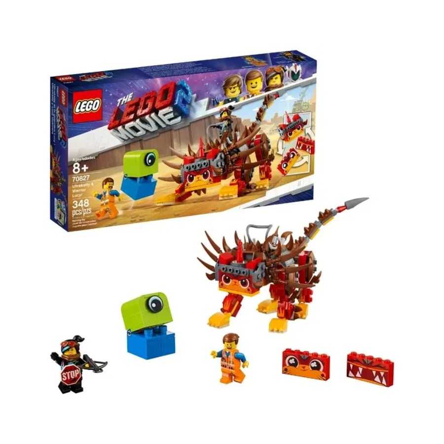 LEGO 70827 set offers a building experience for children aged 7 and above, allowing them to construct a red-and-blue space racing car. The set includes 3 minifigures: Emmet, Wyldstyle, and Batman, with accessories like rockets and extra pieces to modify the car. This set helps develop creativity and hand-eye coordination, providing an adventurous and challenging play experience.