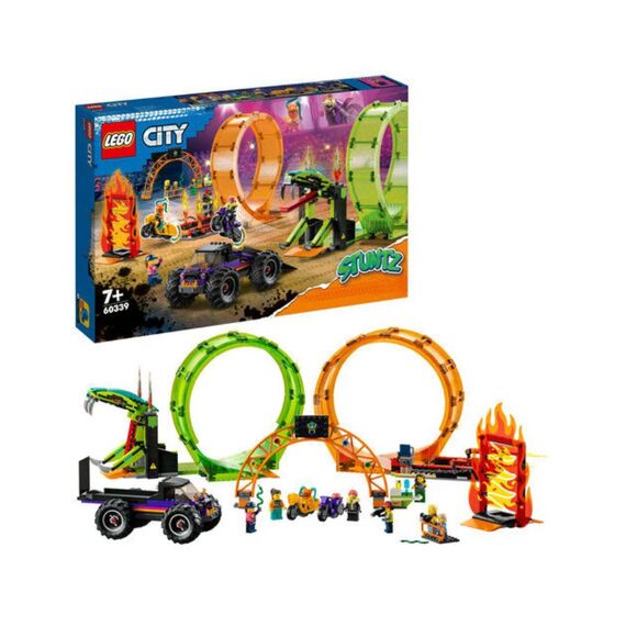 The LEGO City Double Loop Stunt Arena 60339 is an action-packed playset designed for thrill-seekers and stunt enthusiasts. This 598-piece set, suitable for children aged 7 and up, features two flywheel-powered stunt bikes, a monster truck with a ramp, a wall of flames, a snapping snake loop, and a ring of fire. The set also includes seven minifigures, allowing for dynamic storytelling and imaginative play. The modular design allows for customization and reconfiguration of the stunt arena, providing endless possibilities for exciting performances.