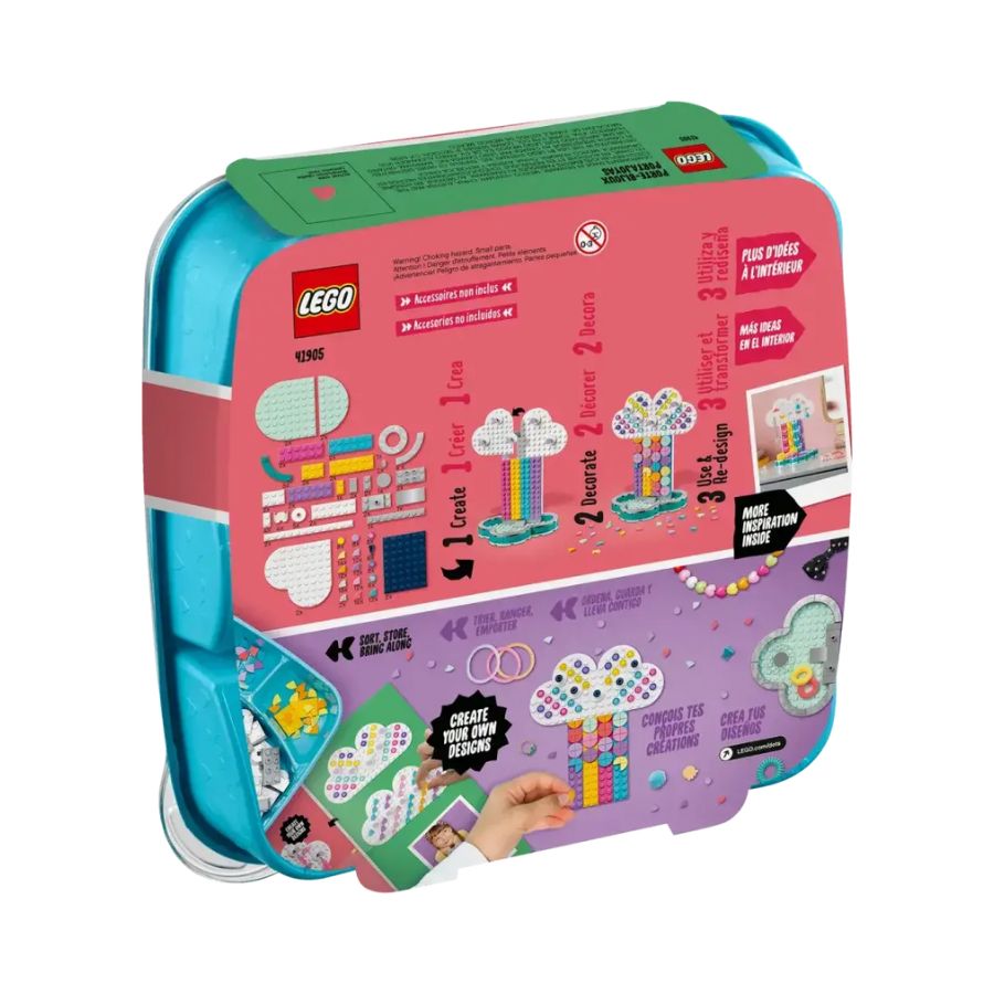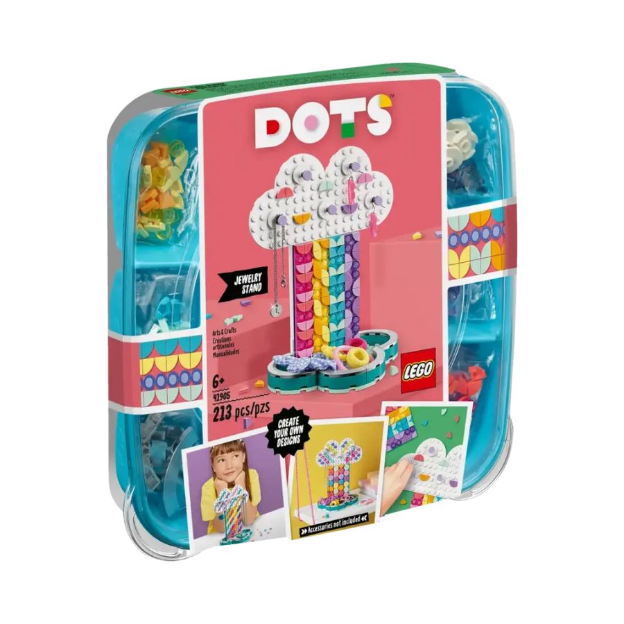 The LEGO DOTS set 41905 – Rainbow Jewellery Stand is a creative arts-and-crafts kit suitable for children aged 6 and up. It consists of 213 pieces. The set allows builders to construct and decorate a jewellery stand with a rainbow-themed palette and five hooks for hanging accessories, plus a storage tray for the decorative tiles. Its vibrant colours and customization options encourage creativity and allow the stand to double as room décor, making it both fun and functional.