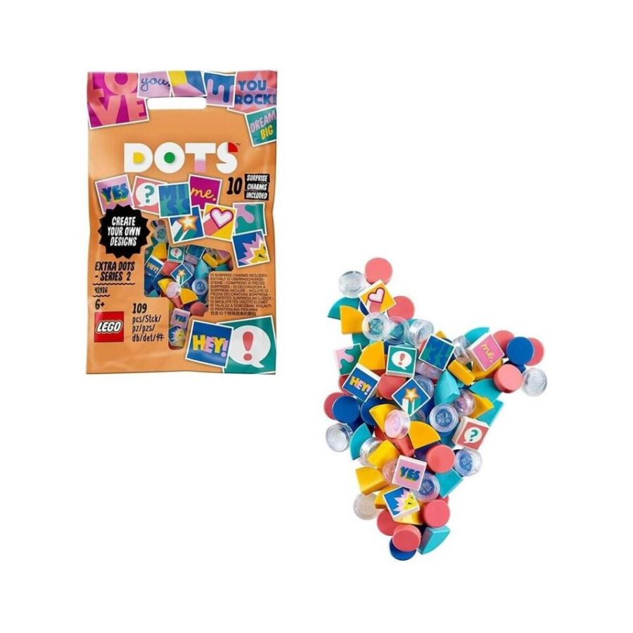 The LEGO DOTS 41916 set – Extra DOTS Series 2 – is an add-on pack aimed at children aged 6 and up. It includes 109 decorative tiles, with around 20 opalescent glitter tiles and 10 printed tiles from a selection of 16 designs. It’s designed to work with other DOTS sets like bracelets, frames or décor items, allowing children to personalise and refresh their creations anytime. This set promotes creative freedom, fine motor skill development, and self-expression through design and colour choices.