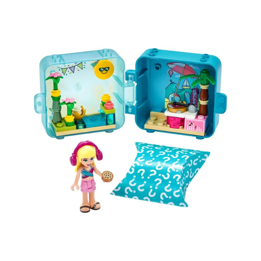 LEGO Friends Stephanies Summer Play Cube 41411 is a compact and portable playset for kids aged 6+, featuring 56 pieces. This set includes a mini-doll figure of Stephanie, a dog figure, a buildable beach scene, a sandy play area, a sailboat, a trophy, and fun accessories for interactive storytelling. All pieces attach securely to the cube base, allowing children to play anywhere. When finished, the cube folds neatly for storage or travel. This set encourages creativity, imaginative play, and problem-solving skills, making it perfect for young LEGO and summer adventure enthusiasts.