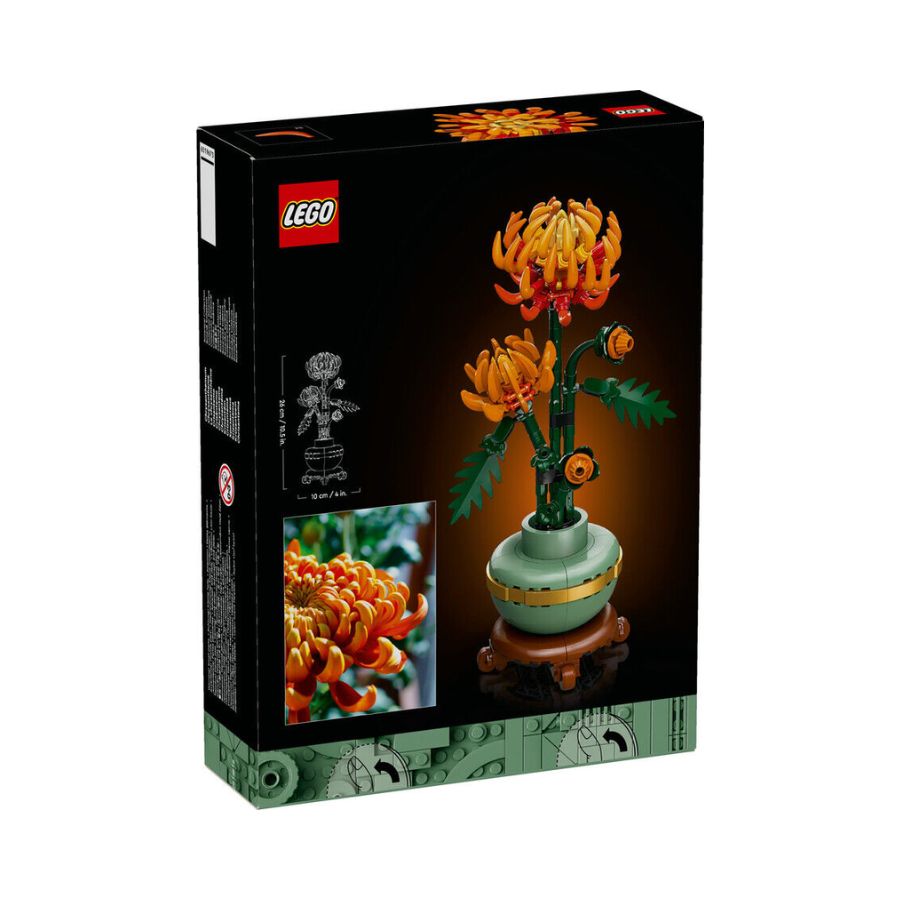 LEGO Icons Chrysanthemum 10368 is a detailed botanical model designed for adult fans aged 18+, comprising 278 pieces. This set authentically replicates a vibrant orange chrysanthemum in various stages of bloom—bud, blossoming, and full bloom. The posable petals and leaves allow for customizable display, while the pastel green flowerpot with a golden band and wood-effect plinth add an elegant touch. Measuring over 26 cm (10.5 inches) in height, this maintenance-free floral centerpiece brings a splash of color to any space. It's a perfect gift for those who appreciate art, nature, and mindful building experiences.