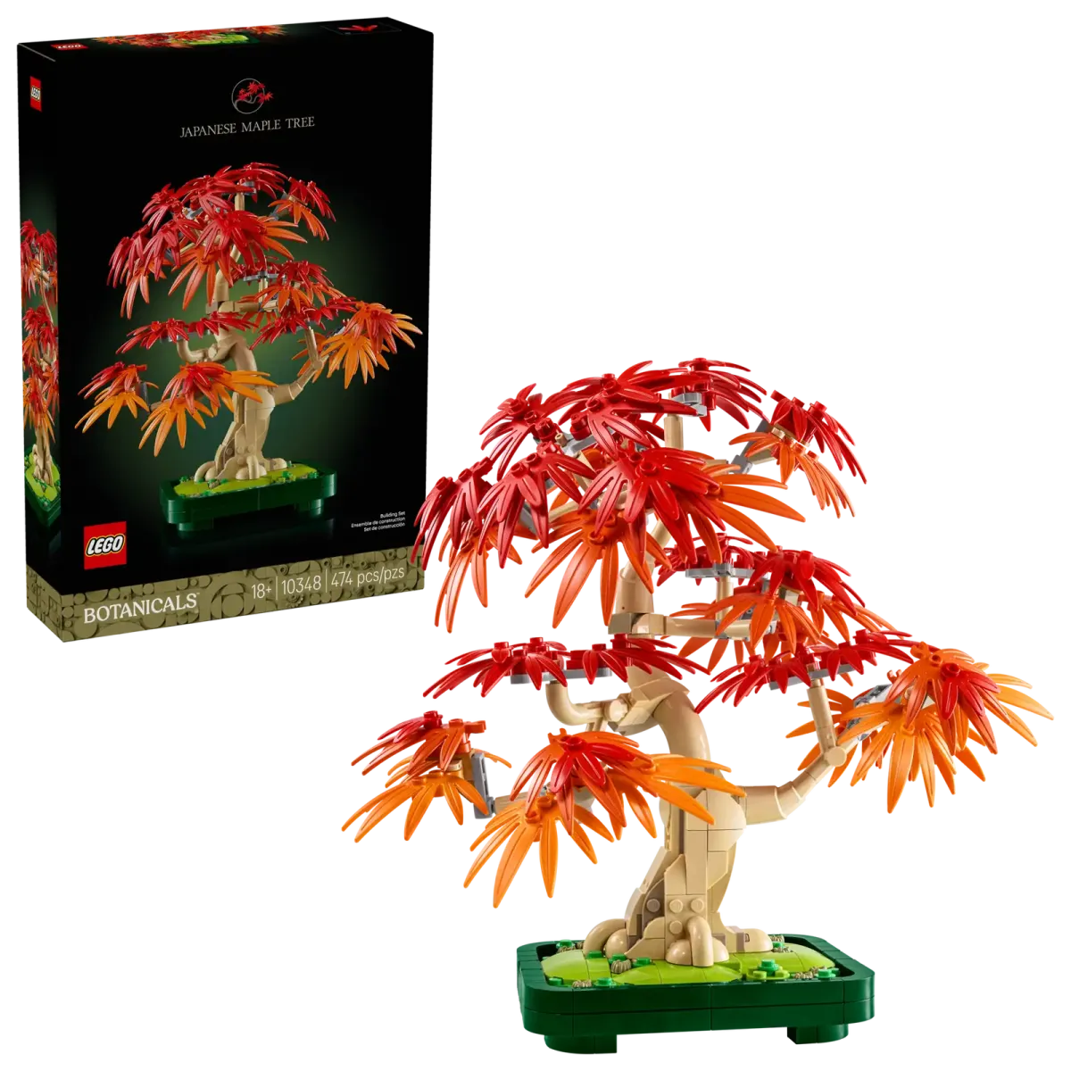 The LEGO Botanical Collection Japanese Red Maple Bonsai Tree 10348 set invites adult builders to enjoy a tranquil and creative build inspired by nature. With 474 pieces, it allows you to construct a realistic Japanese red maple bonsai tree with vivid red and amber leaves, set in a dark green plant pot for elegant display. Designed as a maintenance-free décor item, the completed model provides the look of real foliage without watering or upkeep. This set combines craftsmanship, calm focus, and decorative flair, making it a refined addition to the LEGO Botanical Collection.