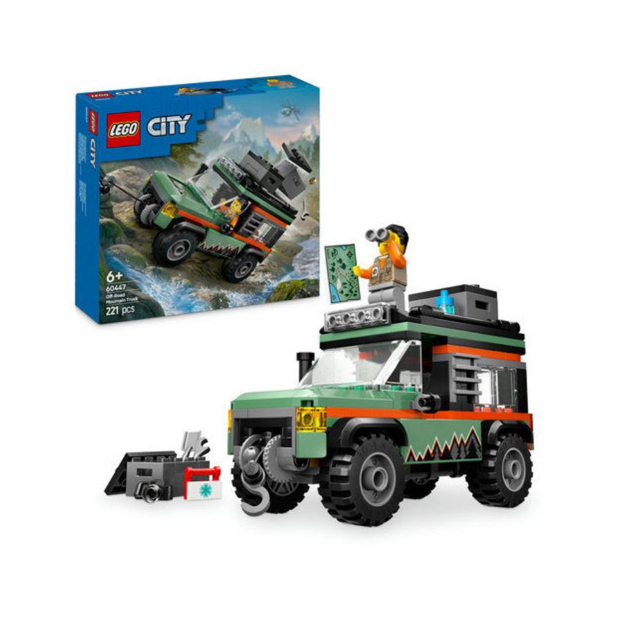 The LEGO Off-Road 4×4 Mountain Truck 60447 takes builders on rugged terrain adventures with a strong, adventurous build. This set includes 221 pieces and is designed for children aged 6 and up. The truck features large off-road tyres, roof storage boxes packed with tools, a functional winch to haul loads up steep slopes, and a flip-up snorkel hood for engine access. With one adventurer minifigure and accessories like a camera, water bottle and map, kids can role-play expedition scenes and imagine themselves conquering mountains and rough landscapes. The set encourages creative play, problem-solving, and understanding how off-road vehicles function, while being compatible with other LEGO City sets for extended storytelling.