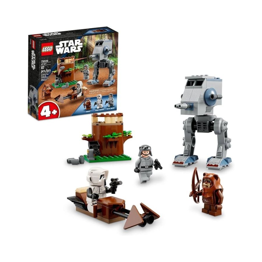 LEGO Star Wars set 75332 offers an engaging building experience for children aged 4 and up, allowing them to construct the iconic AT-ST (All Terrain Scout Transport) from "Return of the Jedi." The set includes 87 pieces and features minifigures of Wicket the Ewok, a Scout Trooper, and an AT-ST Driver. Designed with a Starter Brick base for easy assembly, this set is perfect for beginners. It also includes a buildable speeder bike with a cockpit for the Scout Trooper and an Ewok lookout with a tree and a catapult for Wicket to defend against the advancing AT-ST. This set makes an excellent gift for young fans eager to explore the Star Wars universe through creative play and construction.
