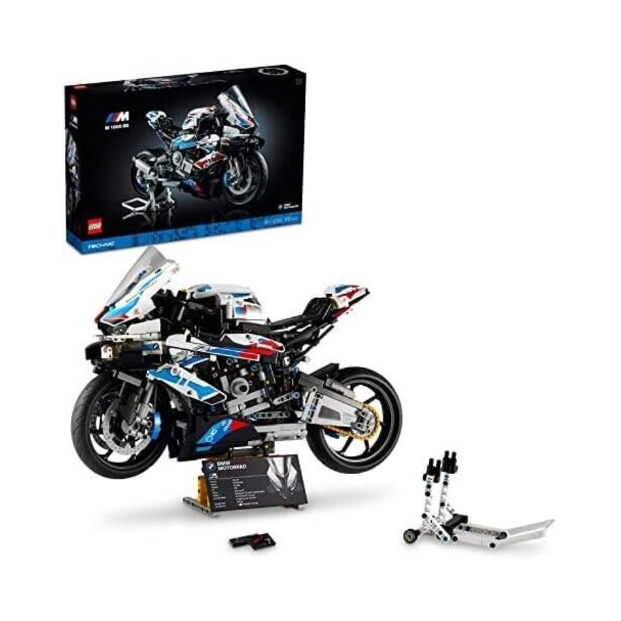 LEGO Technic 42130 is an accurate model of the BMW M 1000 RR, BMW's first M-branded motorcycle. This model features a 1:5 scale, making it the largest motorcycle model in the Technic series. Comprising 1,920 pieces, it includes a 4-cylinder engine, a 3-speed gearbox with neutral, front and rear suspension, functional steering, and chain drive. The red, white, and blue color scheme gives it a distinctive sporty look. The set includes a display stand and a racing stand to showcase the completed model. Suitable for enthusiasts aged 18 and above, it makes a perfect addition to any LEGO collection or for motorcycle aficionados.