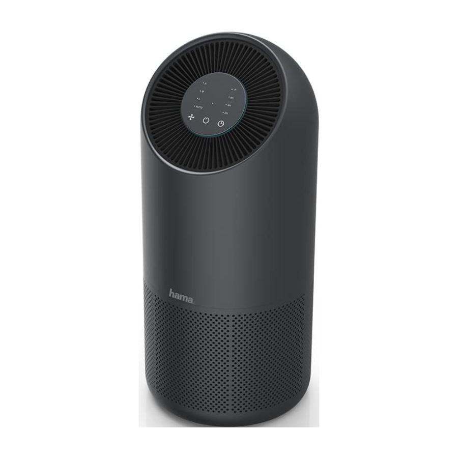 The Hama 186437 Smart Air Purifier uses a three-stage filtration system—pre‑filter, HEPA H13, and activated charcoal—to remove dust, pollen, bacteria, odors, and harmful gases. You can control it via wi‑fi using the Hama Smart Home app or by voice with Alexa and Google Assistant. It runs quietly (30 dB in sleep mode, up to 50 dB on high), supports a timer (2/4/8 h), and features a touch display with a filter change indicator. With a CADR of 250 m³/h, it is suitable for rooms up to 65 m².