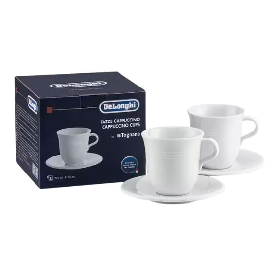 The De'Longhi Cappuccino Cups are specialized ceramic cups designed to showcase your cappuccino with the perfect balance of espresso, steamed milk and foam. With a generous capacity of 270 ml and ergonomic handles, these cups help retain heat and enhance the drinking experience. They are microwave‑ and dishwasher‑safe for everyday convenience, and their classic, timeless design fits beautifully with any coffee setup — whether at home or serving guests in style.