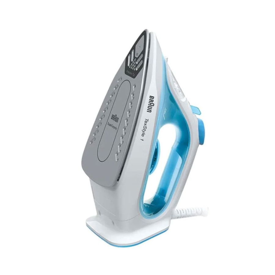 The Braun TexStyle 1 SI1050 steam iron delivers fast and effortless ironing for your everyday garments. With a powerful 2000 W output and steam boost up to 120 g/min, it handles stubborn wrinkles with ease. Its SuperCeramic soleplate ensures smooth gliding over fabrics and is gentle on delicate materials. Thanks to the rapid heat-up (35 seconds) feature and a 220 ml large water tank, you can iron more without frequent refilling. The precision tip reaches collars and seams, while the anti-drip system prevents water stains even at low temperatures. The self-clean feature helps maintain optimal performance.