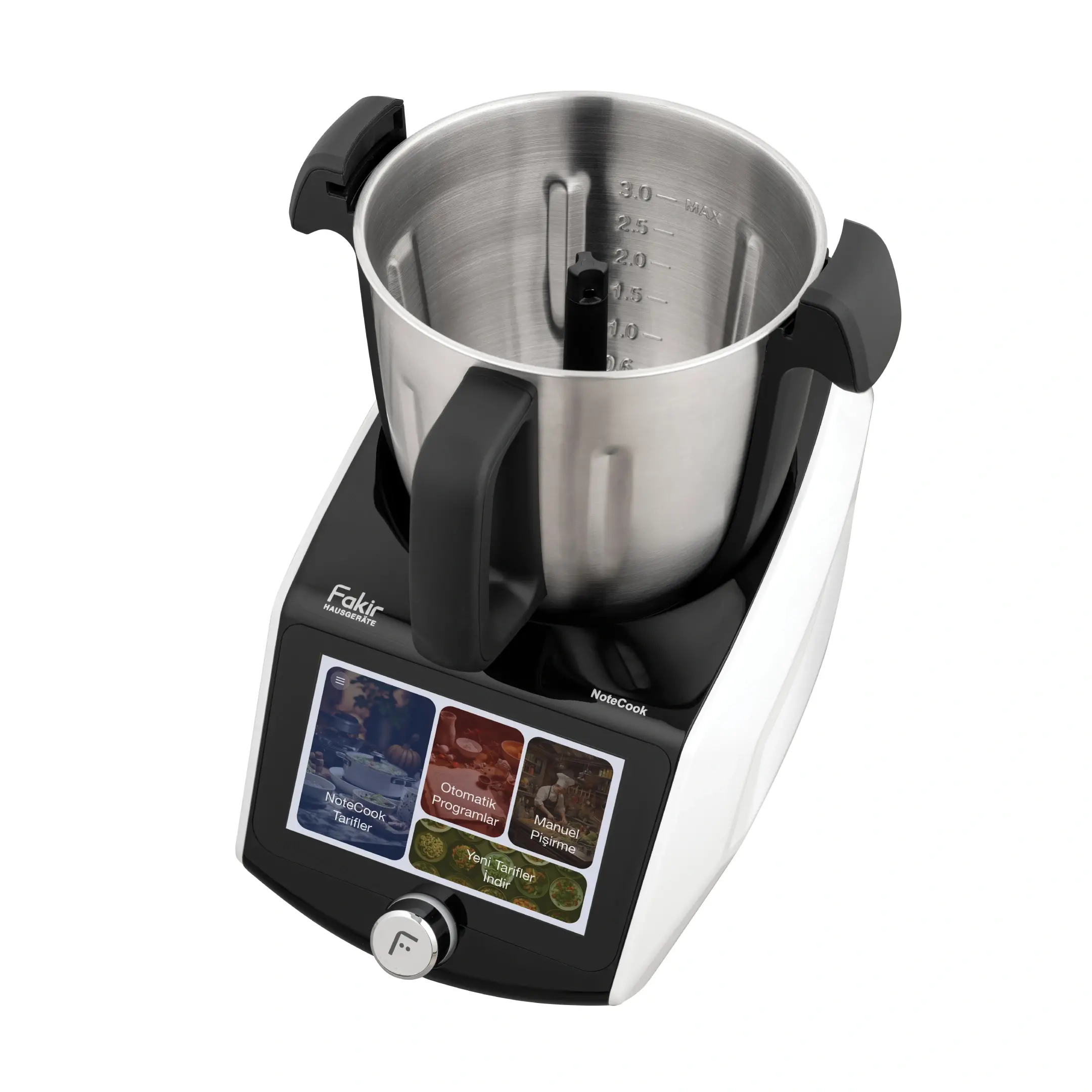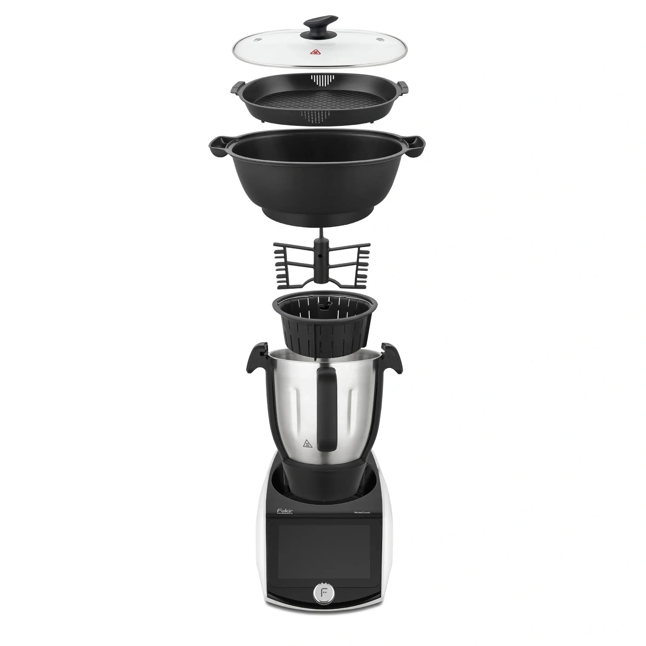 The FAKIR NoteCook Multifunctional Cooker is a versatile kitchen appliance designed to streamline food preparation with smart features. Featuring a power rating of 1800 W and a 4.5 L stainless‑steel cooking chamber, it offers 17 pre‑set cooking functions—including steam cooking, fermentation, slow cook, kneading dough, chopping, sous‑vide, and more. The unit is equipped with a 7‑inch touch screen, built‑in scale for precise ingredient measurement, 12 speed levels, temperature control from 37 °C to 130 °C, and a timer function up to 90 minutes. With over 100 recipe settings and a mobile app for remote control and guided cooking steps, it brings professional‑style convenience to home kitchens