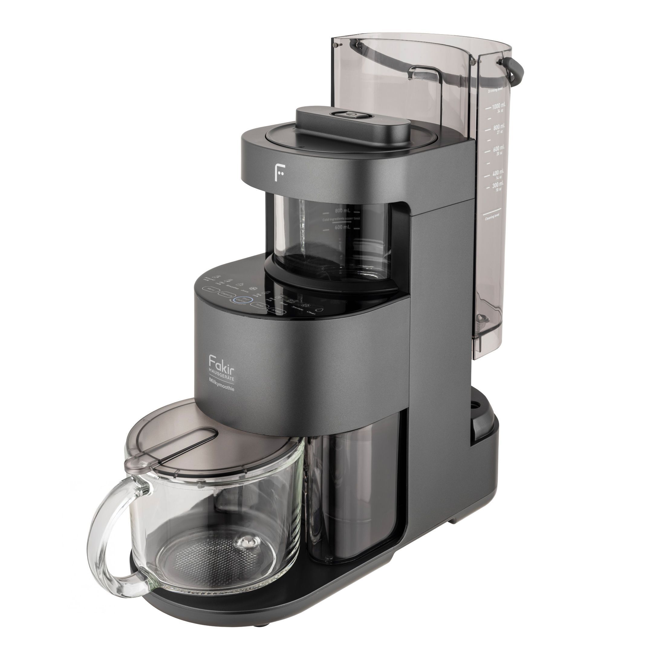 Create delicious, nutrient-packed smoothies, vegan milks, soups, and more with the Fakir Milkymoothie Personal Blender. This all-in-one appliance is perfect for those following a vegan lifestyle or anyone seeking healthy homemade alternatives to dairy milk. Easily prepare almond, oat, or soy milk, then strain it using the included cloth filter bag—and even repurpose the leftover pulp to make almond flour for baking delicious treats like macaroons.The super-quiet DC motor ensures a peaceful kitchen experience, while the 1-liter blending capacity and 1-liter water tank let you prepare generous batches of your favorite drinks. With 10 adjustable speed settings, you can achieve perfect consistency for every recipe, from creamy soups to fresh juices. The heat- and impact-resistant glass jar preserves flavor and is both scratch-resistant and dishwasher-safe for easy cleaning. Combining sleek design, functionality, and healthy performance, the Fakir Milkymoothie is your ideal everyday partner for creative, plant-based living.