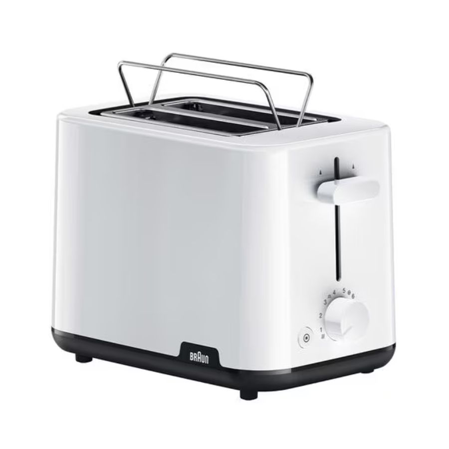 The Braun HT1010 Toaster combines functionality, style, and safety in one elegant appliance. Designed with two wide slots, it easily accommodates various bread types, from thin slices to thick bagels. Its adjustable browning control allows you to toast your bread exactly the way you like it, while the reheat and cancel buttons add extra convenience. The high-lift function ensures easy removal of smaller slices without burning your fingers. With a removable crumb tray, cleanup is quick and simple. Compact and efficient, the Braun HT1010 is the perfect addition to any kitchen, offering consistent toasting results every morning.