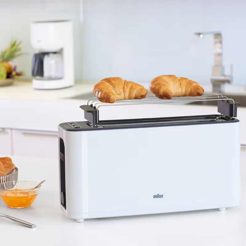 The Braun PurEase Toaster HT3100 ensures perfect, evenly toasted bread every time. With adjustable browning settings, you can toast bread, bagels, and pastries exactly to your preference. The high-lift function allows safe removal of smaller slices, and the removable crumb tray makes cleaning fast and simple. Compact, stylish, and efficient, the Braun PurEase HT3100 is ideal for everyday use, offering convenience, reliability, and consistently delicious results in your kitchen.