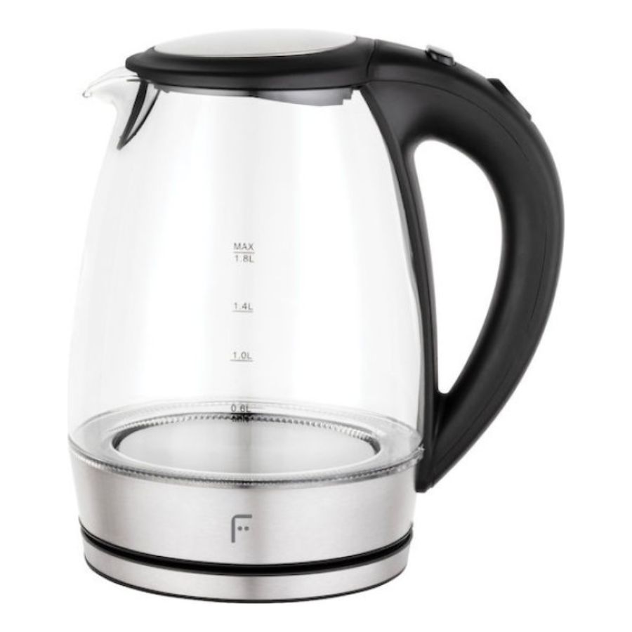 The FAKIR Picardi Kettle in gray is a high-capacity, high-power electric kettle perfect for daily kitchen use. With a large 1.8-litre capacity and a 2200 W heating element, it brings water to boil quickly. It features a glass and stainless-steel body for durability and a modern look, LED indicator lighting for stylish operation feedback, an automatic shut-off when the water reaches boil, dry-run protection to prevent damage if used without water, and a 360° cordless swivel base for ease of use. The ergonomic handle remains cool to the touch and includes a cable-storage slot to keep the kitchen tidy — an excellent choice for families and frequent use.