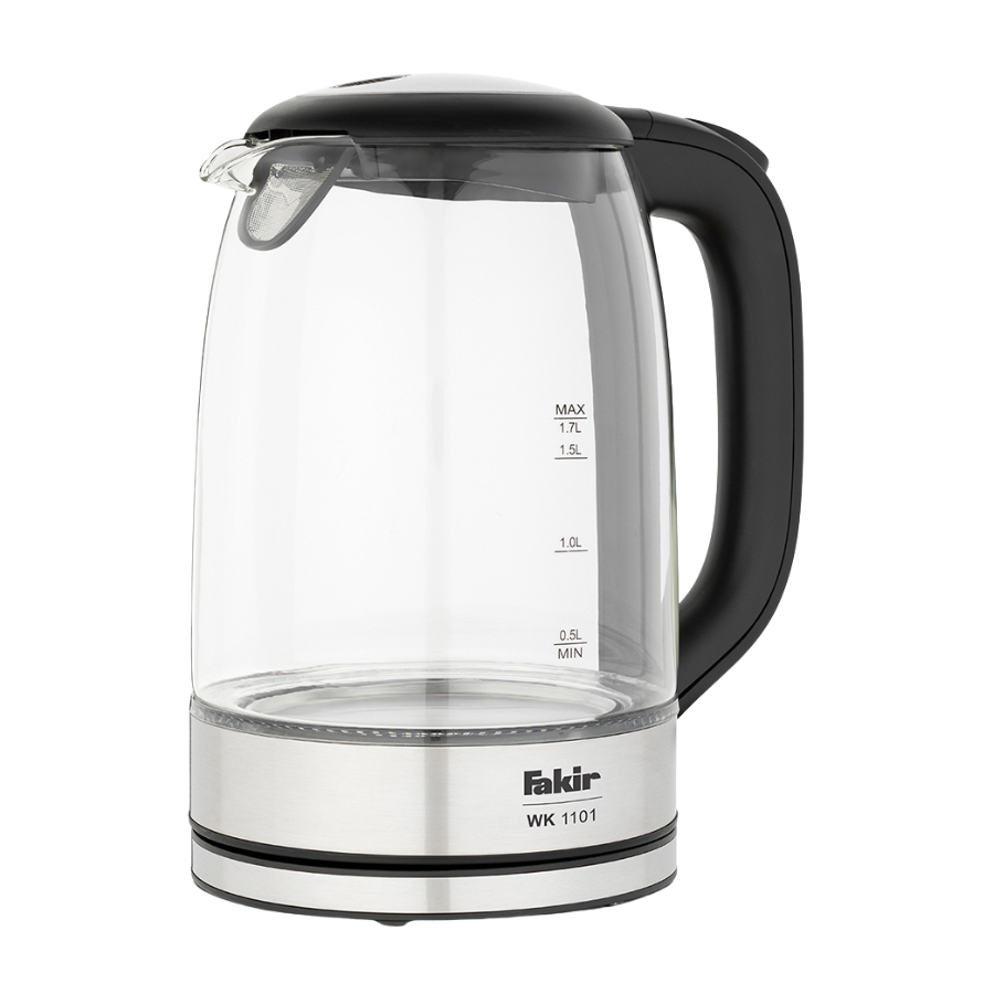 Bring elegance and efficiency to your kitchen with the Fakir WK1101 Glass Electric Kettle, offering a 1.7L capacity and 2200W of power. This beautifully designed kettle combines durability, functionality, and safety to make everyday boiling faster and easier.Crafted with a heat-resistant glass body and a blue LED light indicator that illuminates when the kettle is in operation, it ensures both style and convenience. The cool-touch handle protects your hands, while the automatic shut-off and boil-dry/overheating protection features guarantee safe use every time.The 360° rotatable cordless base provides flexibility, and the built-in cable storage slot keeps your space tidy. Equipped with a safety-locked lid to prevent spills and a stainless-steel heating element, the Fakir WK1101 delivers a fast, safe, and stylish boiling experience — a perfect balance of elegance and performance for every modern kitchen.