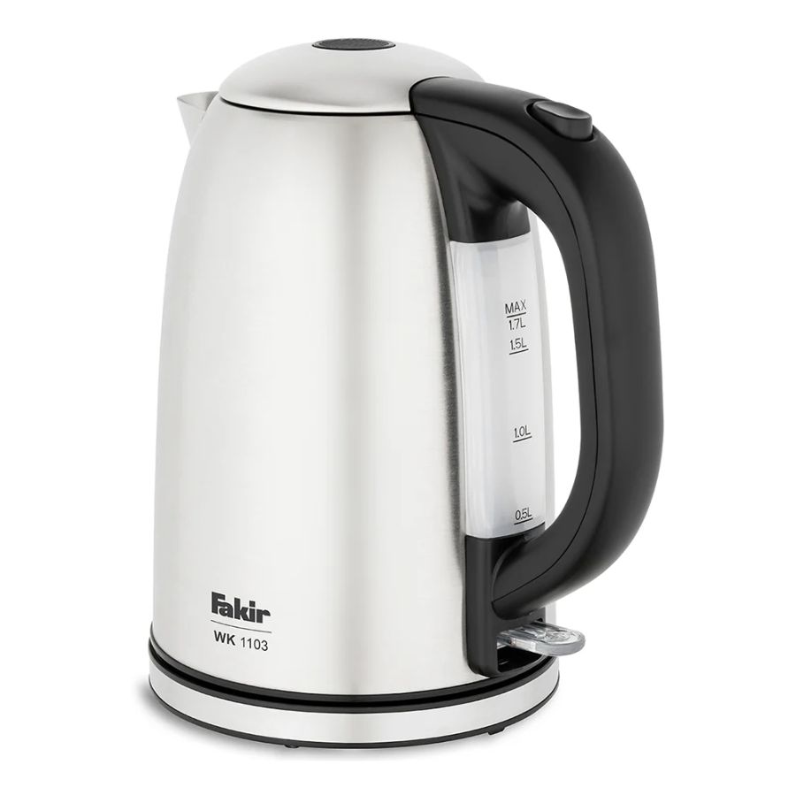 The FAKIR WK 1103 Electric Kettle – Silver offers a 1.7‑litre capacity and a powerful 1850‑2200 W heating element, enabling fast boiling for daily use in the home or office. It features a stainless steel body with a modern silver finish, a 360° swivel base for convenient placement, automatic shut‑off when water boils or if the kettle runs dry, and a concealed heating element that makes cleaning easier and improves safety. The ergonomic handle remains cool to the touch, the lid locks securely to prevent spillage of steam, and the wide spout delivers smooth pouring. With efficient build and reliable safety features, it’s a strong choice for a versatile, everyday kettle.