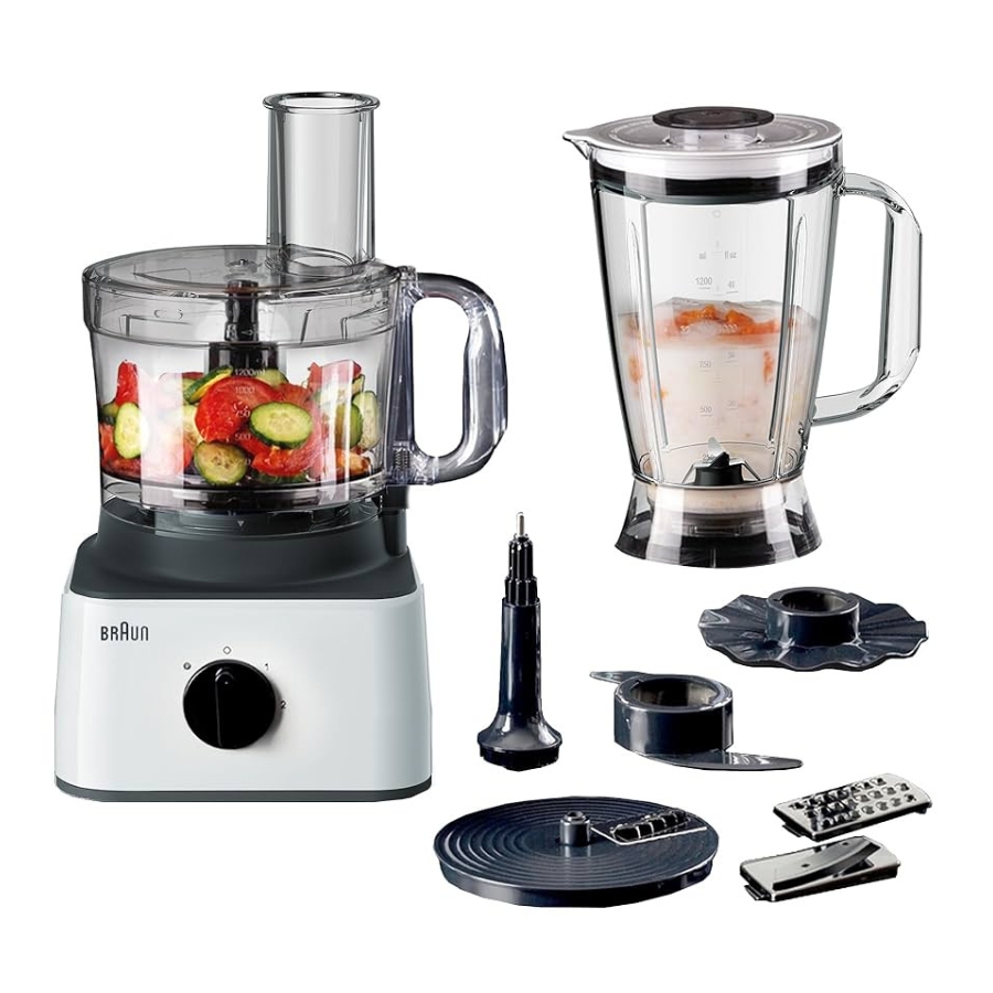 The Braun Food Processor 8 in 1 FP0132 is a powerful and versatile kitchen companion designed to make food preparation effortless. Equipped with a strong motor and a wide range of 8 essential functions, it allows you to chop, slice, shred, knead, whisk, blend, and more — all in one compact appliance. The dual-speed control with pulse function ensures precision for various ingredients, while the large-capacity bowl and blender jar make it ideal for family-sized meals. With dishwasher-safe, BPA-free parts and a sleek, durable design, the FP0132 combines efficiency, safety, and convenience, making it an essential tool for modern kitchens.