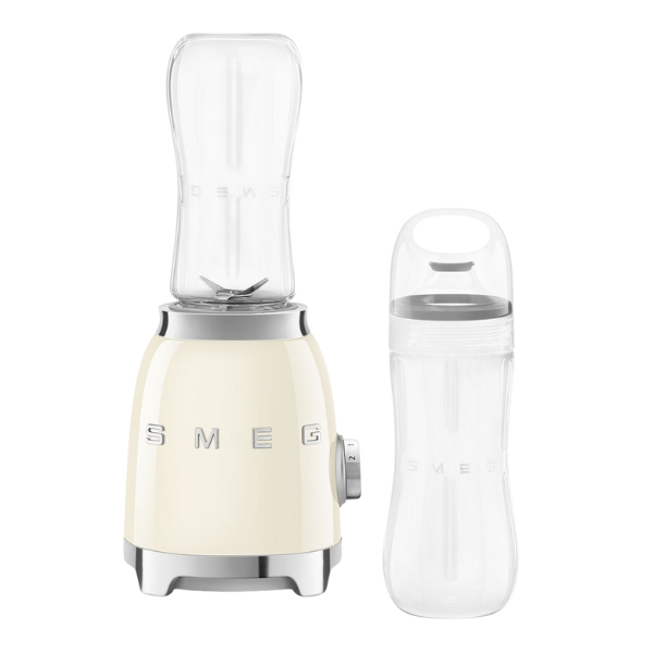 The Smeg Cream Personal Blender offers the brand's signature 1950s retro charm in a compact and convenient form, featuring the iconic high-gloss cream finish and soft curves. Designed for on-the-go simplicity, it typically includes personal-sized cups that attach directly to the blade base, allowing you to blend smoothies, shakes, and supplements right in the same container you drink from. This delightful appliance perfectly marries the timeless Smeg aesthetic with practical, single-serve functionality for a quick and stylish nutrition boost.