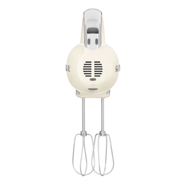 The Smeg Hand Mixer in Cream showcases the brand's iconic 50s retro design with its high-gloss, curvaceous body in a soft, elegant finish. More than just a beautiful countertop accessory, it is a powerful and versatile tool for baking, equipped with multiple speed settings to effortlessly handle tasks from whipping cream to kneading dough. With its included attachments and lightweight, ergonomic design, this mixer perfectly blends timeless aesthetic appeal with modern kitchen functionality.