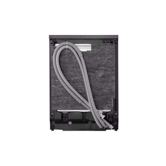 The LG QuadWash™ Dishwasher, 14 Place Settings, EasyRack™ Plus, Inverter Direct Drive, ThinQ, Black color dishwasher combines elegant design with cutting-edge technology to deliver powerful and efficient cleaning. Equipped with QuadWash™ technology, it uses four multi-motion spray arms to ensure complete coverage and spotless results from every angle. Its TrueSteam® function adds high-temperature steam to eliminate bacteria and reduce water spots on dishes. With a spacious interior that accommodates up to 14 place settings, the adjustable racks and EasyRack™ Plus system allow for flexible loading of large pots, pans, and delicate items. The Inverter Direct Drive Motor ensures quiet operation and long-lasting durability, while the SmartThinQ® app offers remote control and cycle monitoring for added convenience.