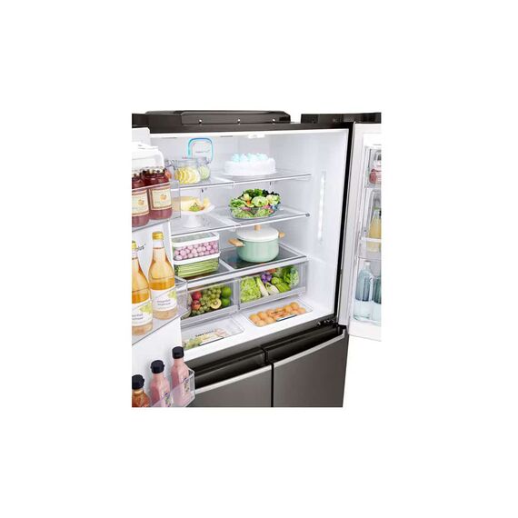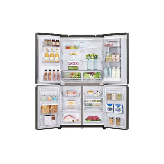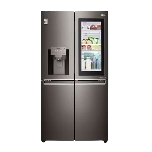 Experience cutting-edge cooling technology with the LG InstaView Door-in-Door, Four Door Refrigerator, 705L Gross Capacity featuring the advanced InstaView Door-in-Door™ design. With a stunning dark black finish and a large 705-liter capacity, this refrigerator is perfect for modern kitchens and large families alike. The InstaView panel allows you to see inside without opening the door — simply knock twice on the sleek glass panel to illuminate the interior, reducing cold air loss and keeping your food fresher for longer. Powered by an Inverter Linear Compressor, this refrigerator delivers quiet, energy-efficient performance and consistent cooling, with the backing of a 10-year warranty. LINEAR Cooling™ and DoorCooling+™ technologies ensure that cold air is evenly and quickly distributed, maintaining optimal freshness throughout. Stay connected and in control with SmartThinQ™, which lets you adjust settings remotely via your smartphone. Inside, you’ll find tempered glass shelves, bright LED lighting, and an intelligently designed Door-in-Door compartment for easy access to frequently used items. For those seeking elegance, smart functionality, and advanced cooling in one appliance, the LG InstaView Door-in-Door, Four Door Refrigerator, 705L Gross Capacity is the ideal solution.