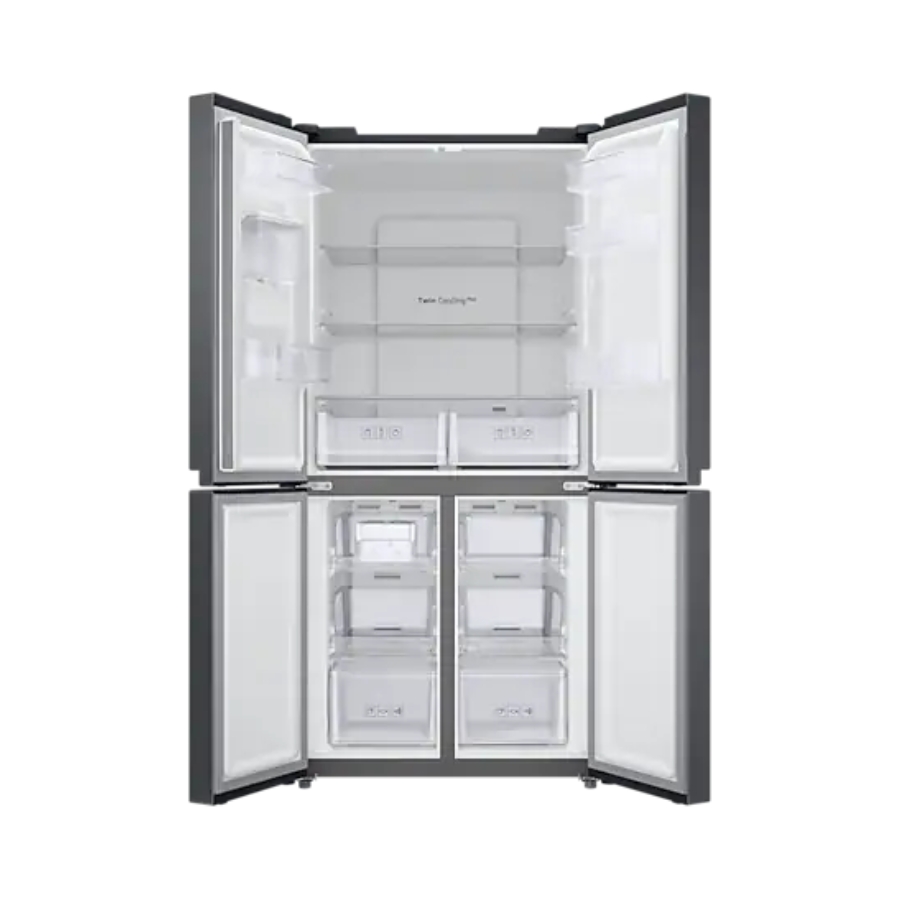 The Samsung French Door Refrigerator with a 466-liter capacity combines premium design, spacious storage, and advanced cooling technology to elevate your kitchen experience. Its French door layout offers wide shelves and easy access to both fresh and frozen items, while adjustable compartments provide flexible organization for groceries of all sizes. Equipped with Samsung’s efficient cooling system, it ensures precise temperature control and even airflow to keep food fresher for longer. With a sleek modern exterior, durable build quality, and energy-efficient performance, this refrigerator is the perfect choice for families who value both functionality and elegant style.