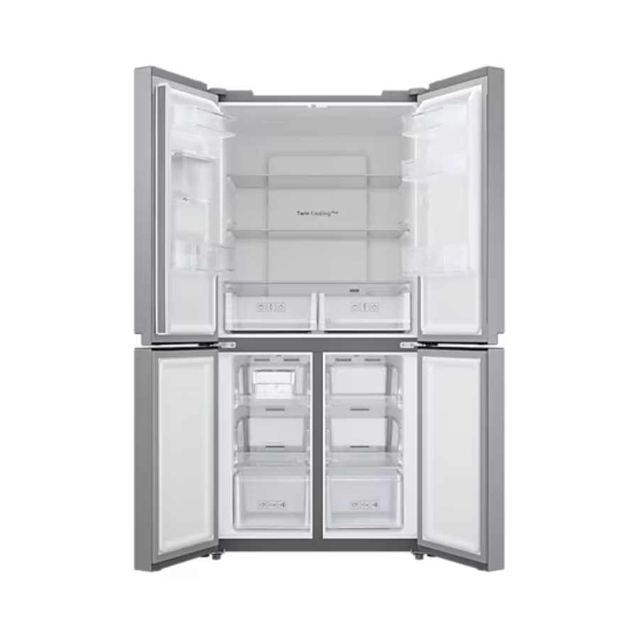 The Samsung French Door Refrigerator with a 466-liter capacity combines premium design, spacious storage, and advanced cooling technology to elevate your kitchen experience. Its French door layout offers wide shelves and easy access to both fresh and frozen items, while adjustable compartments provide flexible organization for groceries of all sizes. Equipped with Samsung’s efficient cooling system, it ensures precise temperature control and even airflow to keep food fresher for longer. With a sleek modern exterior, durable build quality, and energy-efficient performance, this refrigerator is the perfect choice for families who value both functionality and elegant style.
