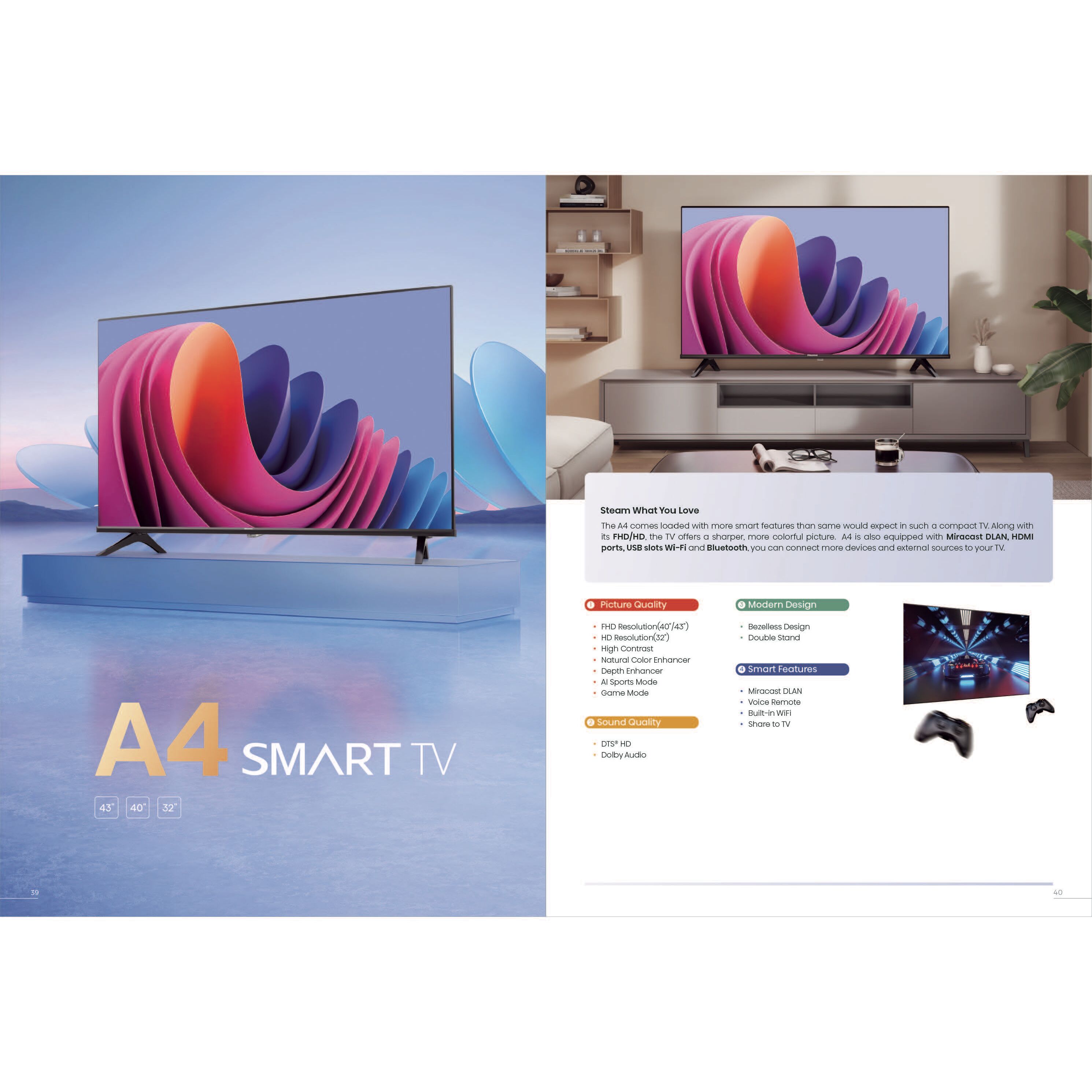 The Hisense A4Q 43" Series FHD Smart LED TV is designed to deliver solid everyday entertainment with Full High Definition clarity and smart functionality. With a resolution of 1920×1080, it offers crisp, detailed visuals for movies, shows and streaming content. The smart platform enables convenient access to your favourite apps, screen‑sharing capabilities and simple navigation, making it easy for family viewing or bedroom setups. The TV features a 60Hz refresh rate, a 16:9 aspect ratio, and a Direct/LED backlit display engineered to provide consistent brightness and viewing angles. Connectivity is generous for its class, allowing you to hook up consoles, soundbars, USB drives and network content. The design is streamlined with slim bezels and a modern black finish that fits into most living spaces. Overall, the A4Q Series represents a budget-smart screen that balances image quality, smart features and ease of use for everyday viewing needs.