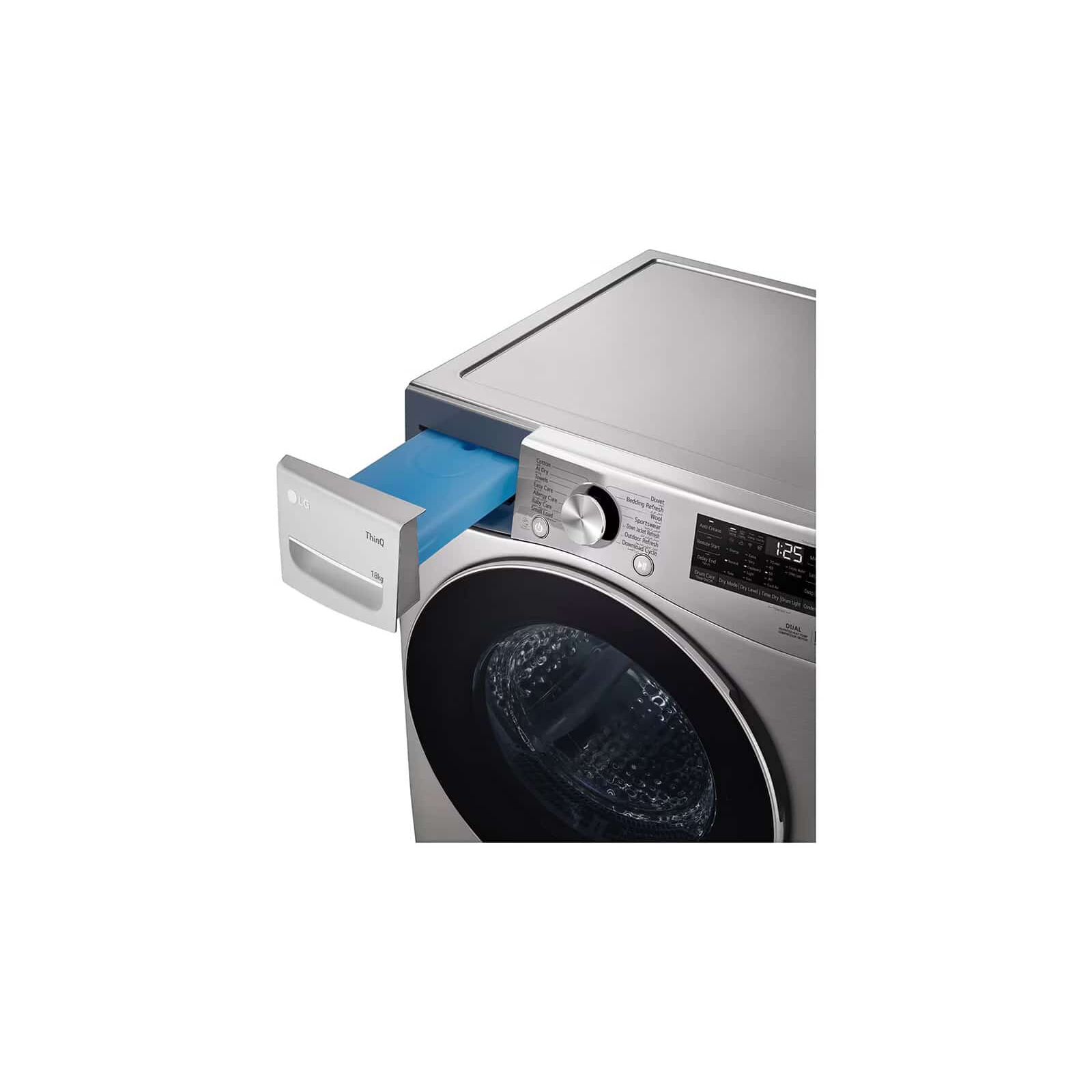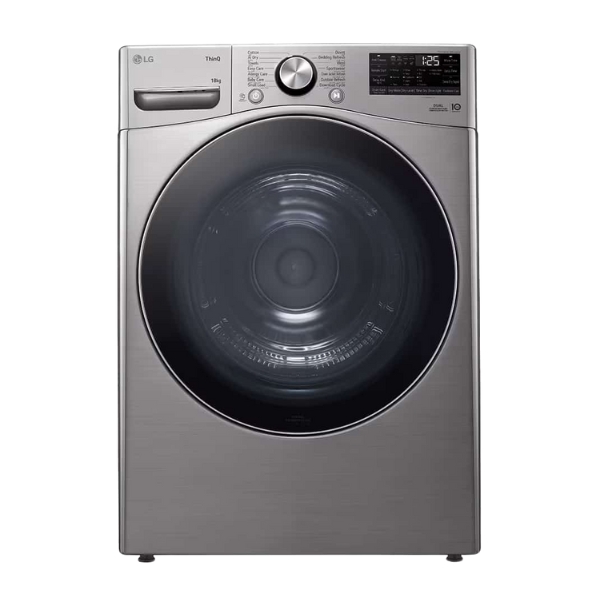 The LG 18Kg Dryer, Dual Inverter Heat Pump™, Sensor Dry, Dual Filter,ThinQ™ is a high-capacity 18kg dryer designed to deliver energy-efficient and powerful drying performance. Equipped with Dual Inverter Heat Pump™ technology, it ensures faster drying with less energy consumption. With smart features like ThinQ™ Wi-Fi connectivity, you can monitor and control your dryer remotely. The Allergy Care program helps eliminate allergens and bacteria, providing extra care for sensitive skin. Additional features include multiple drying cycles tailored for different fabric types, a self-cleaning condenser that reduces maintenance efforts, and a durable stainless steel drum designed for heavy loads. The dryer operates quietly, making it ideal for home environments. Its modern design complements any laundry room.
