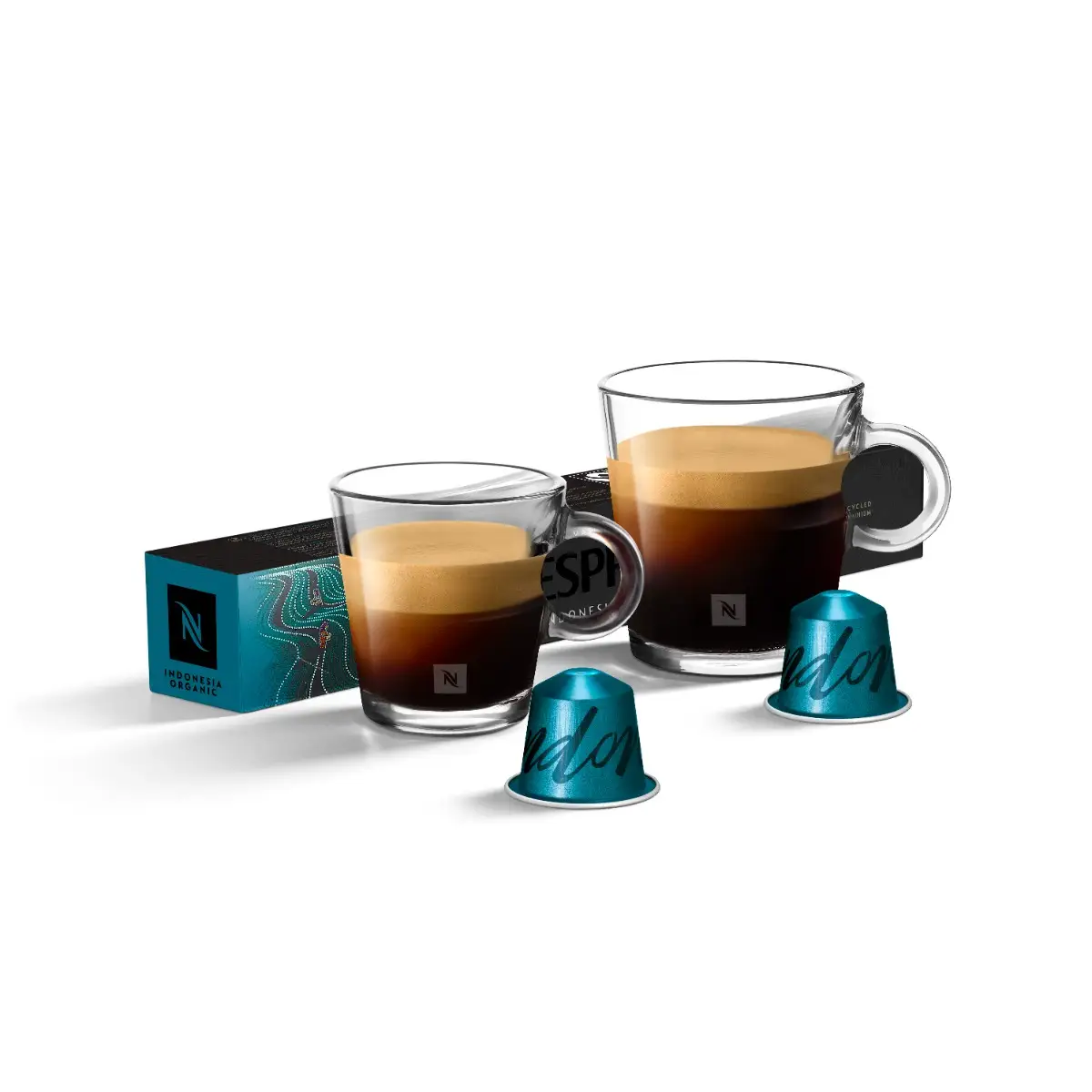 The Nespresso Indonesia capsule features coffee sourced from Indonesian plantations, delivering a full-bodied espresso with earthy, spicy notes and a rich, balanced flavor. Its medium roast and smooth texture provide a complex yet harmonious coffee experience, perfect for those who enjoy bold and distinctive flavors.